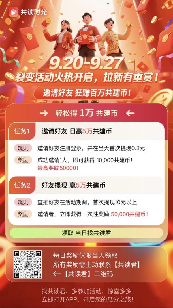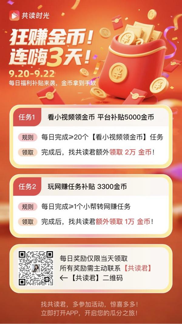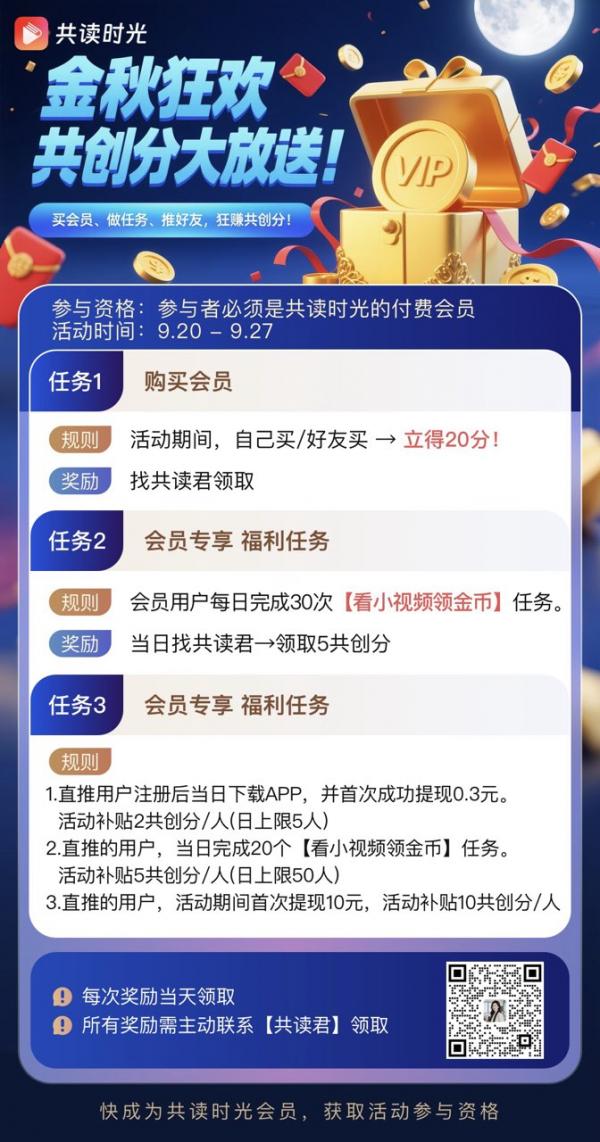 共读时光App全新上线~中秋福利狂撒大放送活动!分红金币等你来瓜分!