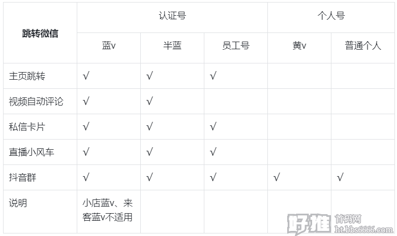 蓝v:官方蓝v、小店蓝v(小店赠送)、来客蓝v(D音来客开通,功能不全)
