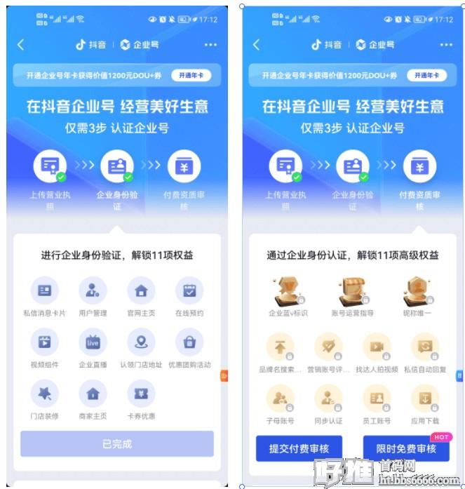 半蓝:完成企业身份验证 免费蓝v:点击限时免费审核,
