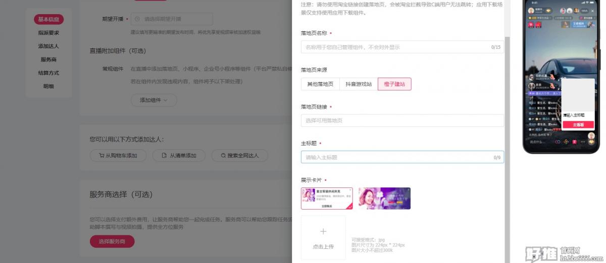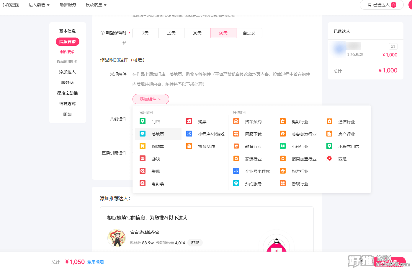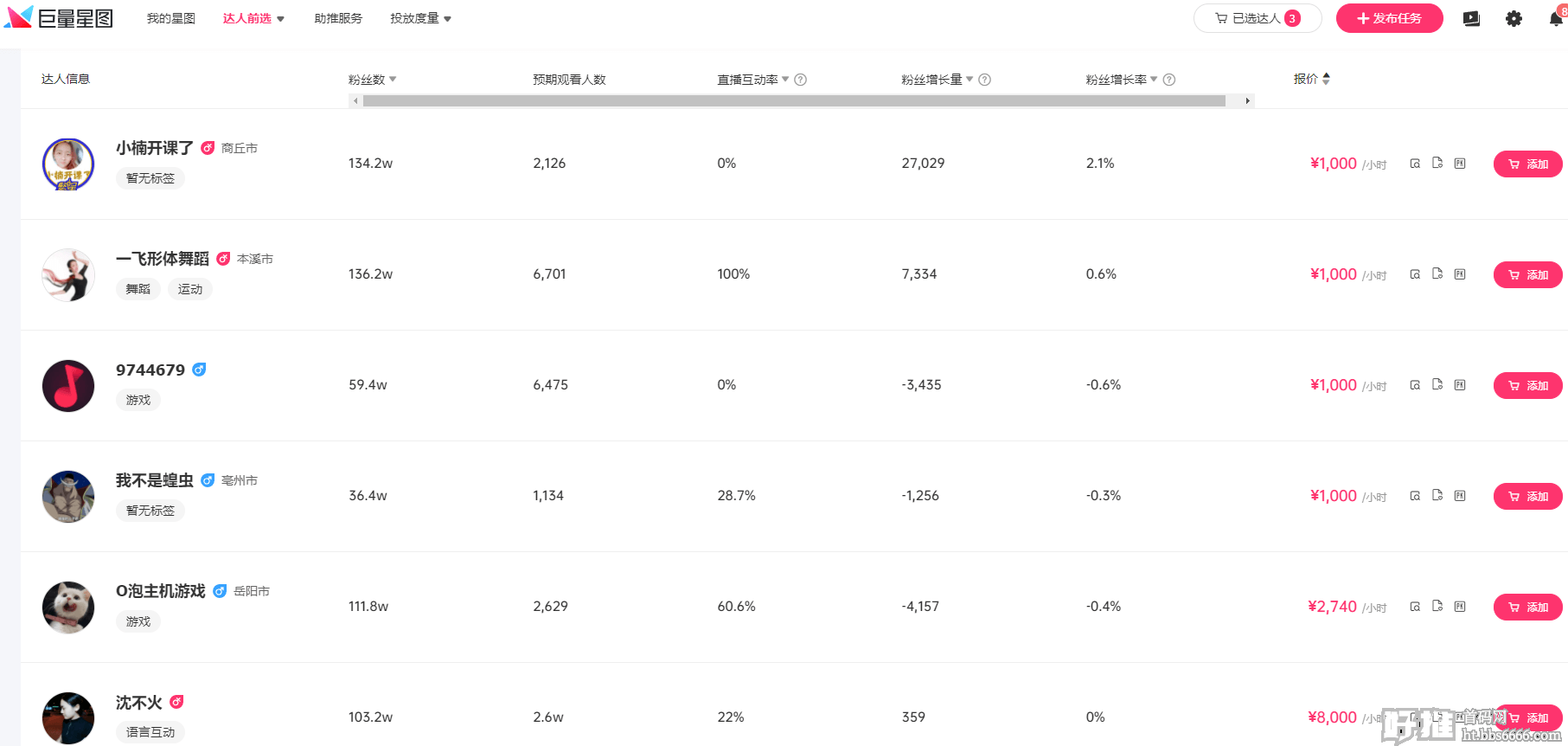 星图后台创建任务-直播-选达人发布任务,1000/小时起,适合人民币玩家,对普通创业者不友好