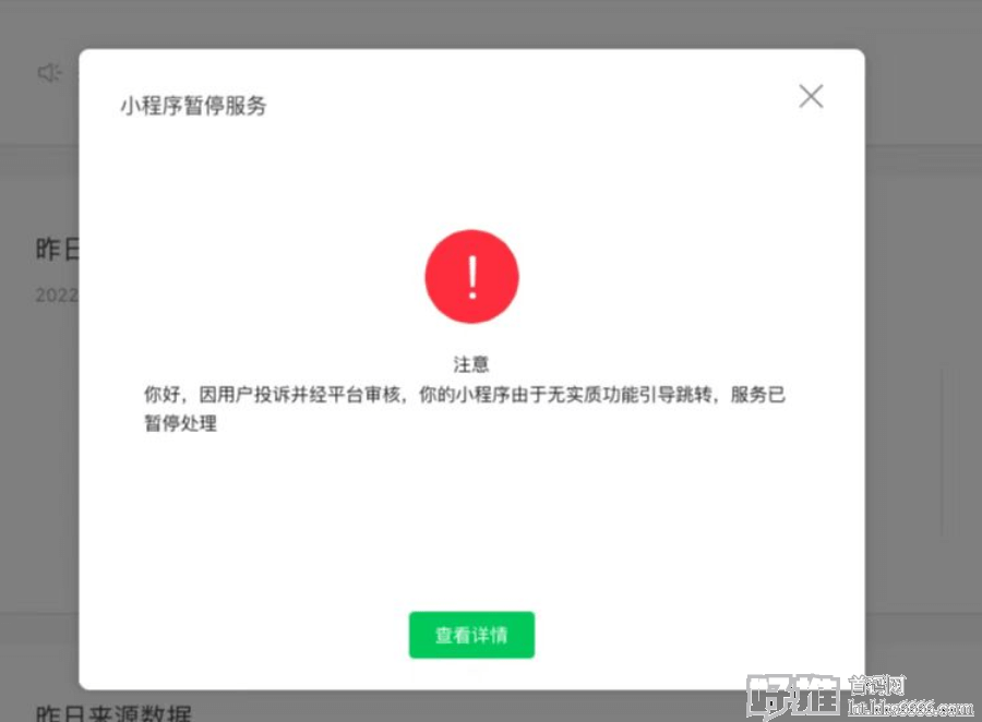 2.被同行举报,轻则封跳转功能,重则直接干废小程序