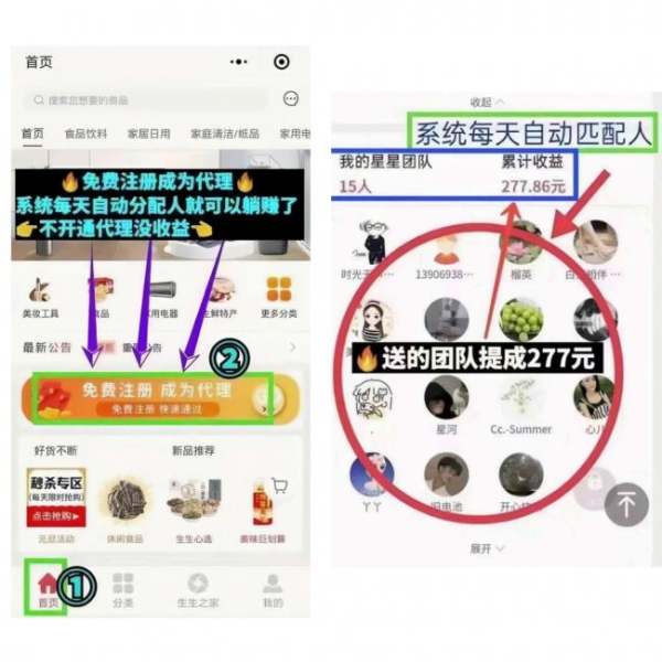 ③:注册申请代理人以后,基本上你就不用管了,注册送你的星星团队人员,购物了你就有佣金拿!