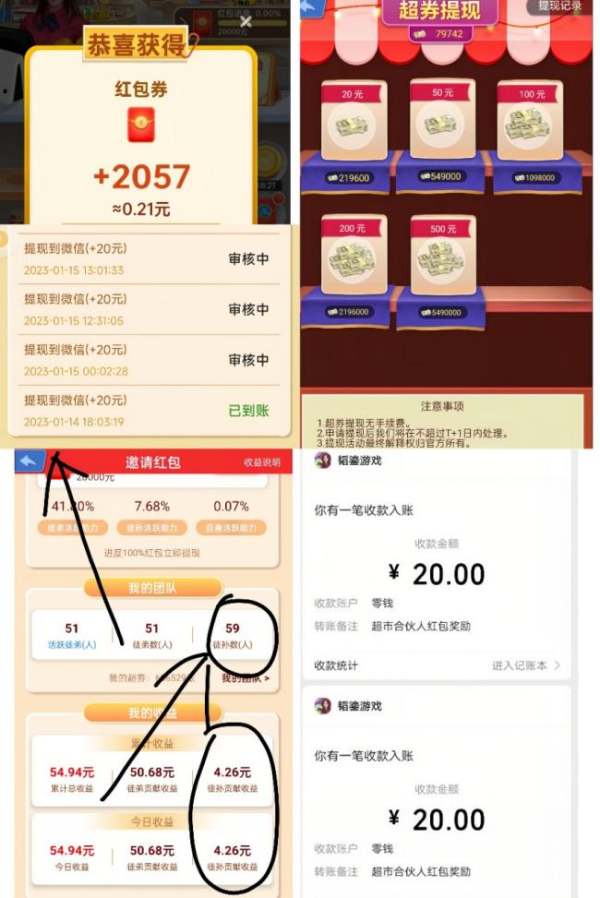平台内的合成都有高额的奖励,邀请好友的奖励也是相当高的,可以直接秒到账微信!另外玩游戏获得的钞票也可以自由交易!