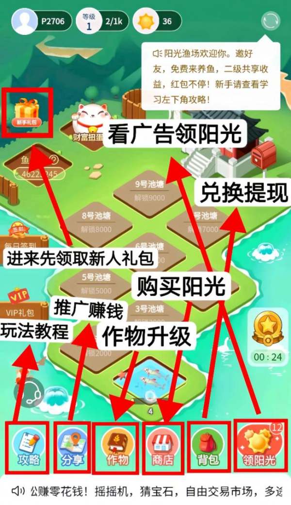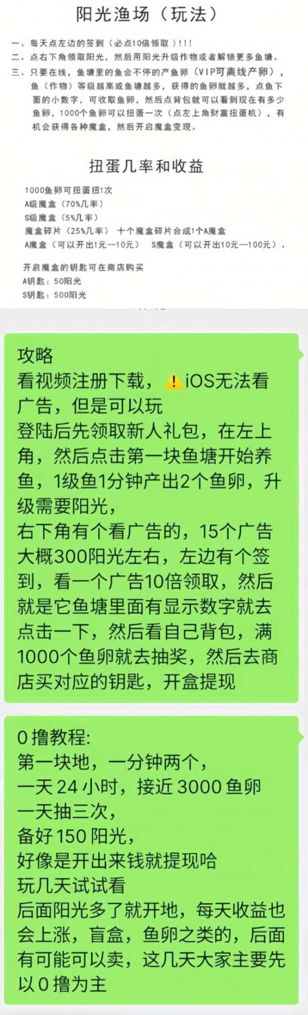 【阳光渔场】新0撸必玩!渔场越多,等级越高,产出的鱼卵就越多,换取的红包也越多!