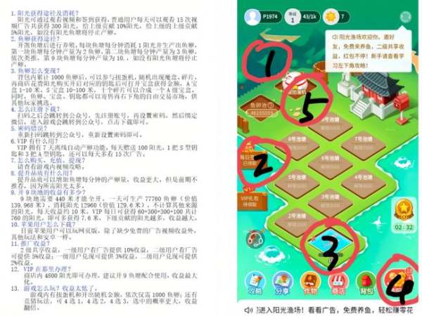 ③:进入软件后→领取新人福利→签到→点击渔塘养鱼(需要阳光自动产卵,下方数字为鱼卵可手动或自动收取)