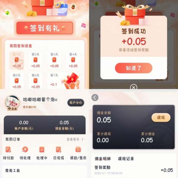 【每天签到领取钱】点击(签到有礼)~进入(签到界面),点击中间的(签到有礼)~进行领取!
