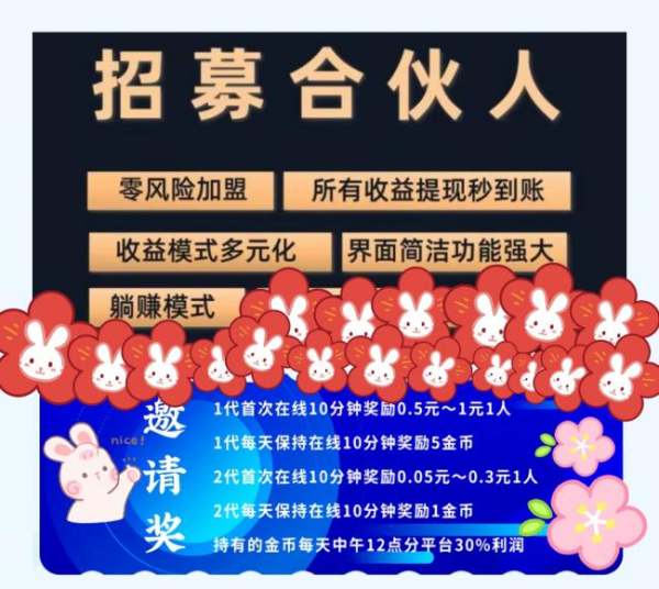 0风险招募合伙人!每天在线10分钟,直接奖励1元红包打款到账!