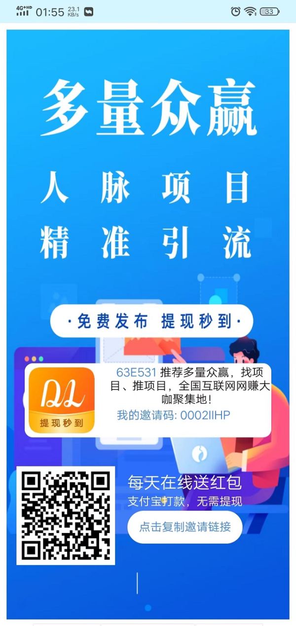 【多量众赢】最新引流平台,2.2号刚刚上线,每天上线白漂0.01元~10元现金红包,支付宝到账,实时到账!