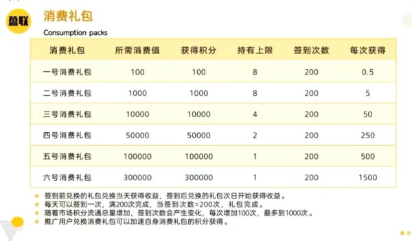 第一大板块,消费全返,累计消费100,你得100个消费值,100消费直释放出来是100个积分,积分每个2-4元(得100东西得400块钱积分)