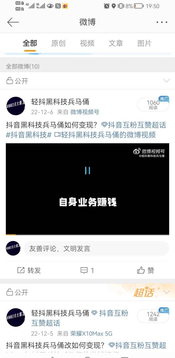 所以微博的起名和简介和公众号类似,都要尽量带上我们的主关键词,D音黑科技。