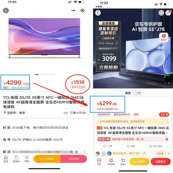比如这款TCL电视在京东平台的售价为4299元。 其实内部价1516元就能买到,也就是说中间差了2783元。 如果自己加300元。 卖了,纯赚300元。 对于很多想要买家电的精准用户来说,其实是一个不小的诱惑。 省下的2000元可以买一台洗衣机。 为什么不这样做呢?