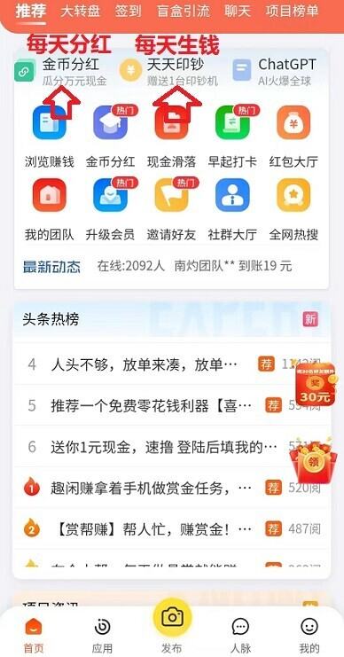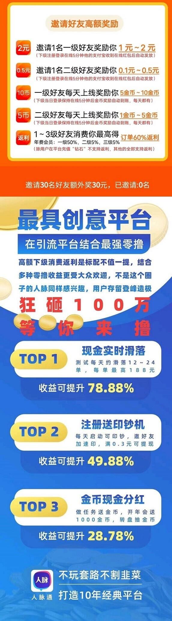人脉通:新引流平台,每天生钱,赚金币每天分红,20起提