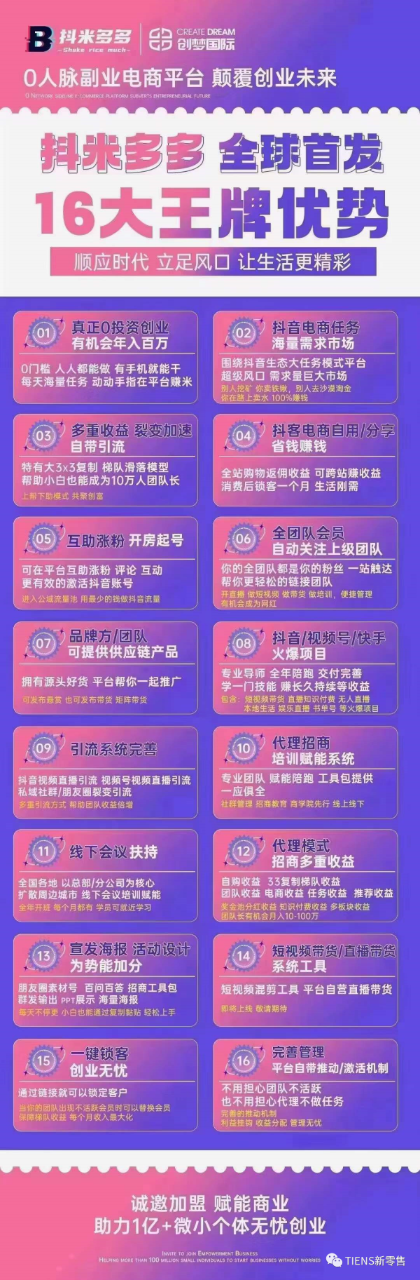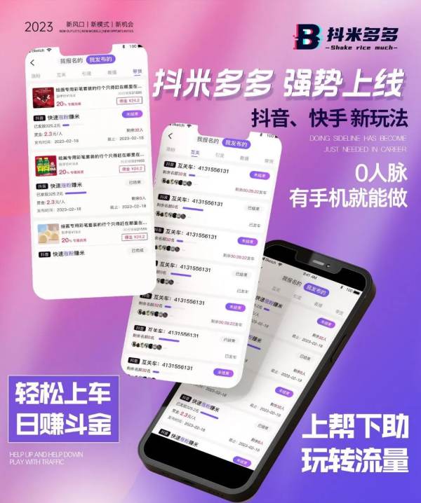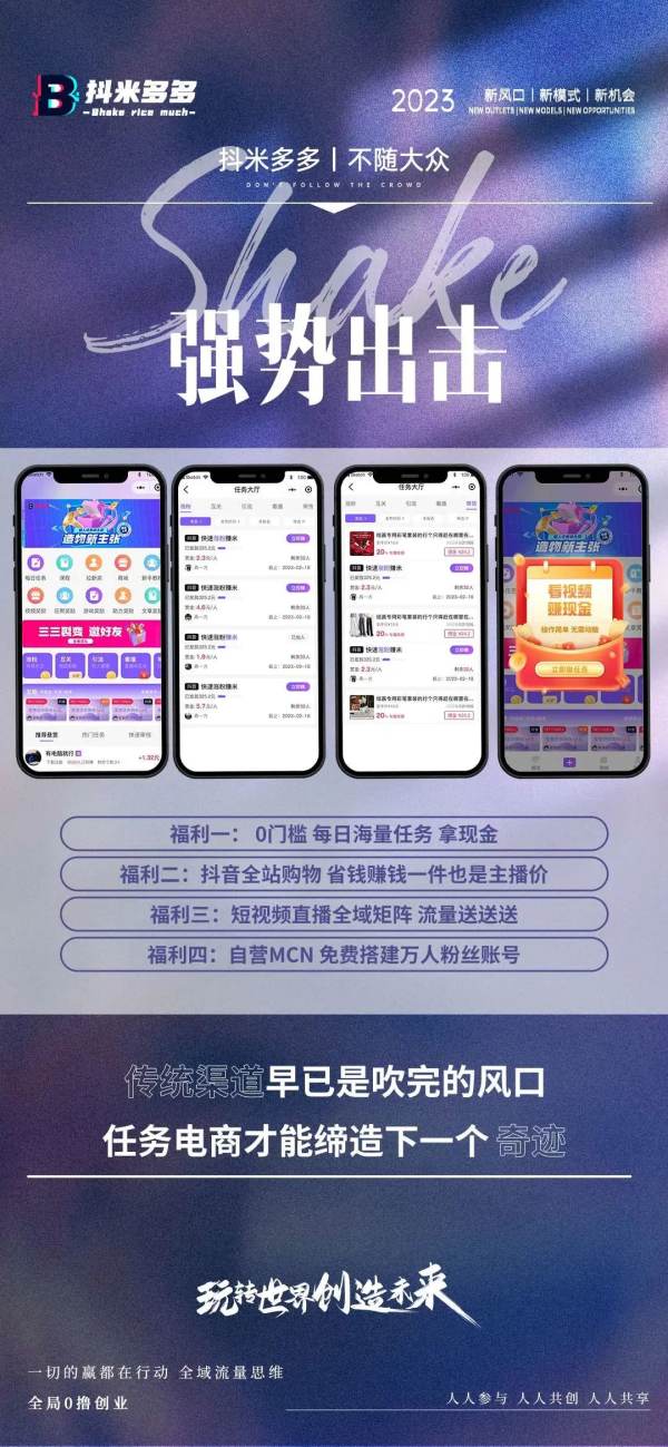 抖米多多是一站式移动数字流量创业便民创客平台,主要是 0 撸任务创业➕短视频直播电商带货
