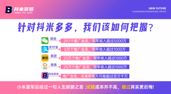 抖米多多不仅是一个创富平台,更是一种生活方式一个社交圈层,或许我们生来平凡,但我们的人生绝不平庸,只要怀瑞梦想,勇于挑战,我们的人生必将光辉灿烂
