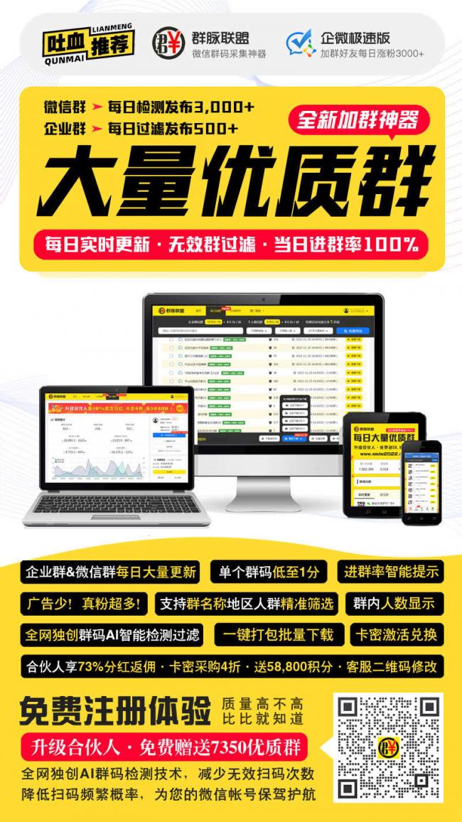 【群脉联盟】大量微信群二维码实时采集首码项目全国招募合伙人教你加群引流赚钱日赚1000+