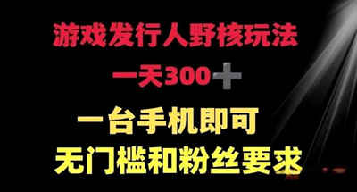 游戏发行人野核玩法 一天300+ 一台手机即可 无门槛和粉丝要求